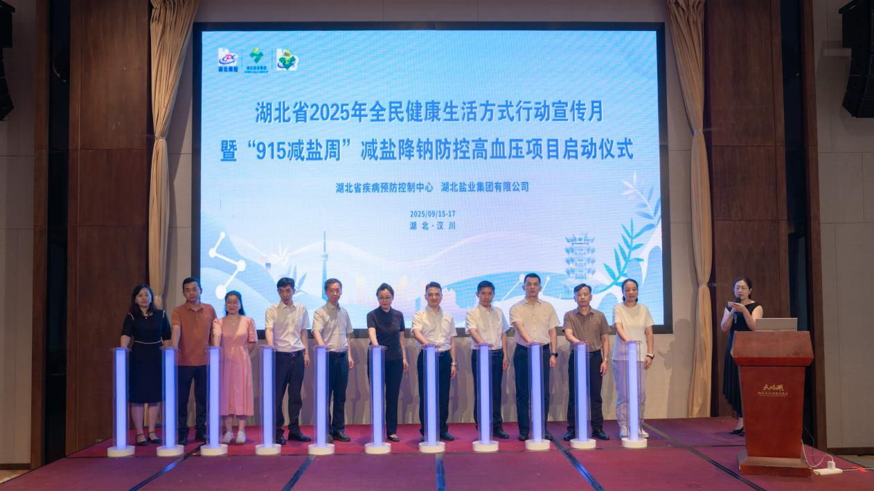 ?9月16日上午,由省衛(wèi)健委、省疾控中心、湖北鹽業(yè)集團(tuán)聯(lián)合舉辦的湖北省2025年全民健康生活方式行動(dòng)宣傳月暨“915減鹽周”減鹽降鈉防控高血壓項(xiàng)目正式啟動(dòng),省衛(wèi)健委、省疾控中心、湖北鹽業(yè)集團(tuán)領(lǐng)導(dǎo)與項(xiàng)目市州負(fù)責(zé)人代表一起啟動(dòng)項(xiàng)目。