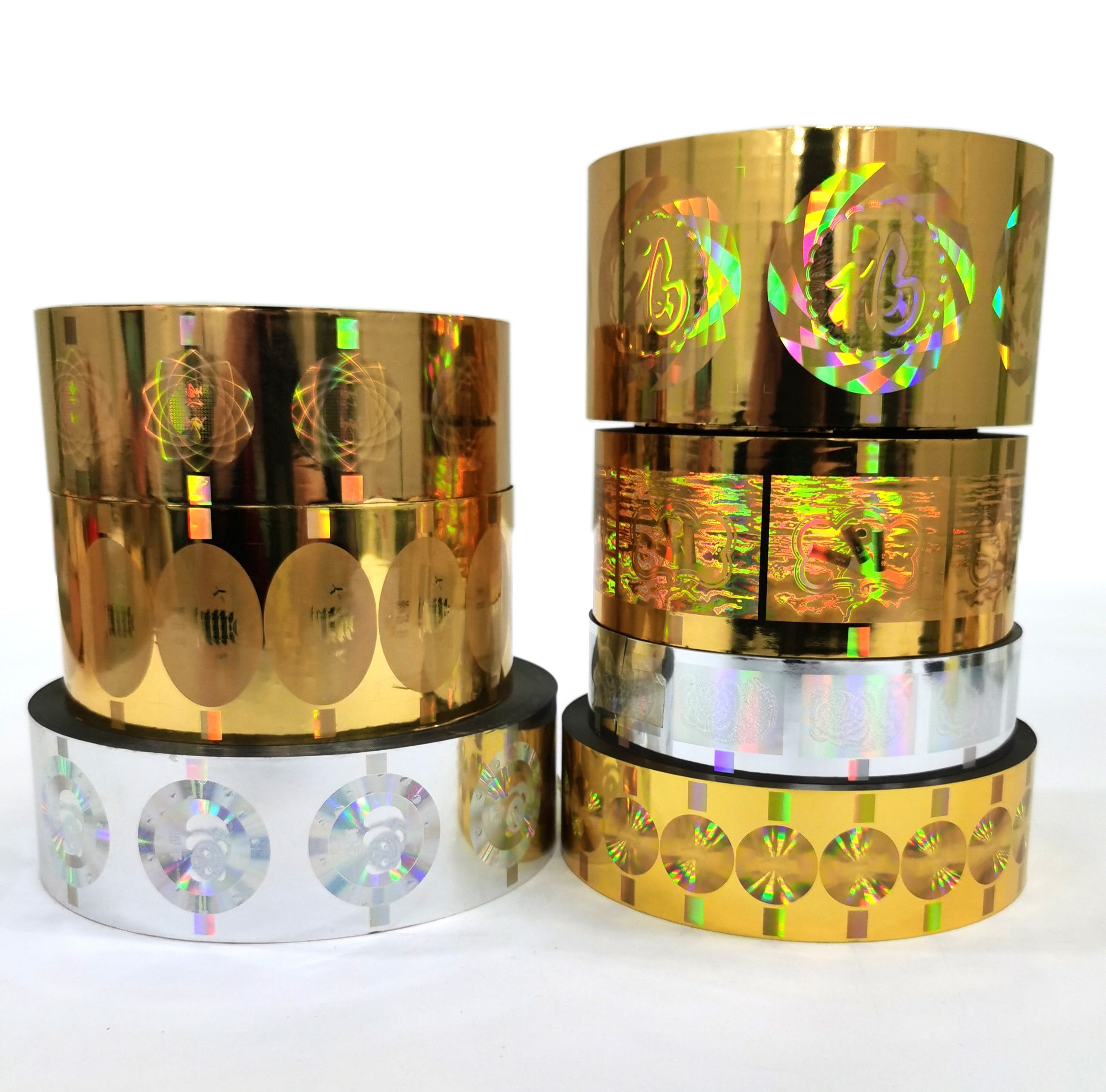 專版定位全息防偽燙金膜是指在高速全自動燙印設(shè)備上,通過電眼識別,將專版定位全息防偽燙金膜上特定的全息圖燙印到指定位置上,其圖案間距穩(wěn)定,制作難度大,防偽級別高。
